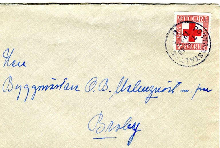 Stämplat POSTANSTALT 1228U (Linghem) den 7.5.45 till BROBY.