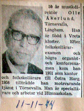 | Åkerlund, Olle, musikdirektör i Törnevalla | 50 år 1974 | ||