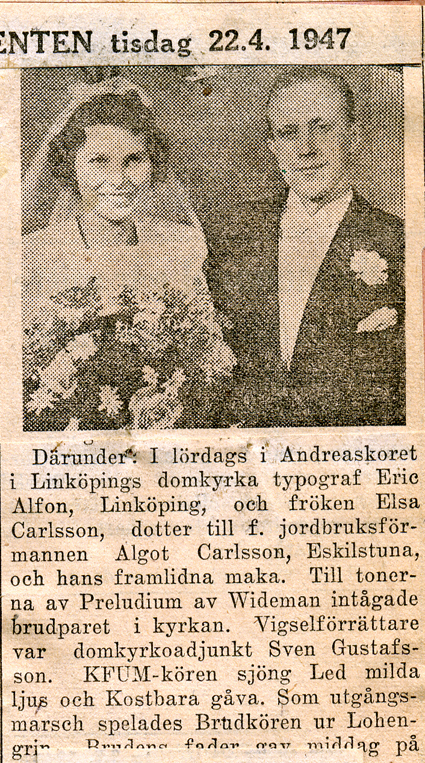| Alfon, Eric typograf, Linköping med maka Elsa Carlsson. Eric är son till David Alfon, bror till Ingrid Alfon. | 1947 | ||