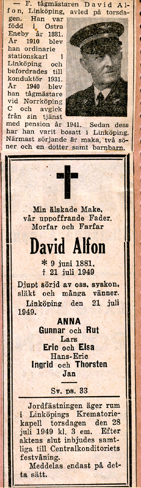 | Alfon, David, tågmästare, Överby | 1949-07-21 | ||