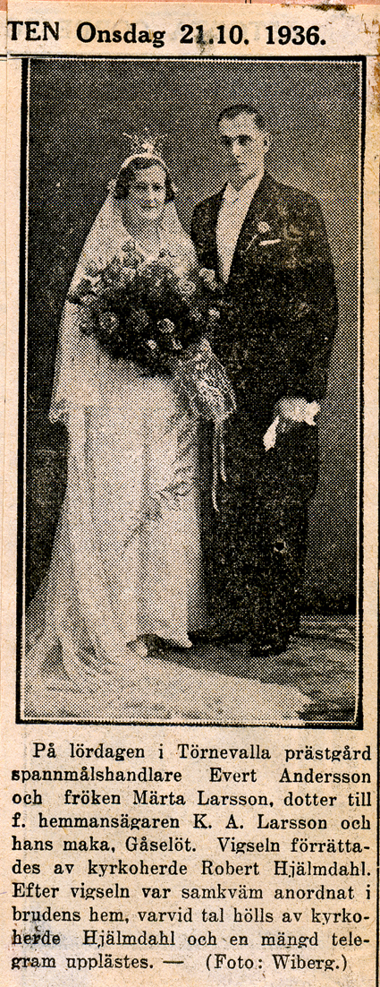 | Andersson, Evert, spannmålshandlare med maka Märta Larsson, dotter till K. A. Larsson Gåselöt | 1936 | ||