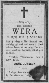 | Andersson, Wera, dotter till Beda och David, Överby | 1943-11-07 | ||