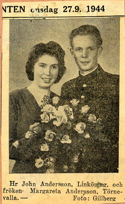 | Andersson, John, Linköping med maka Margareta Andersson, dotter till David Andersson i Överby. | 1944 | ||