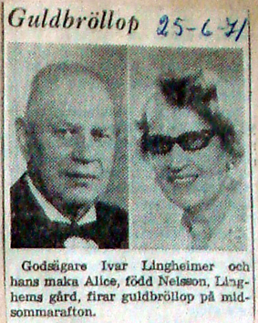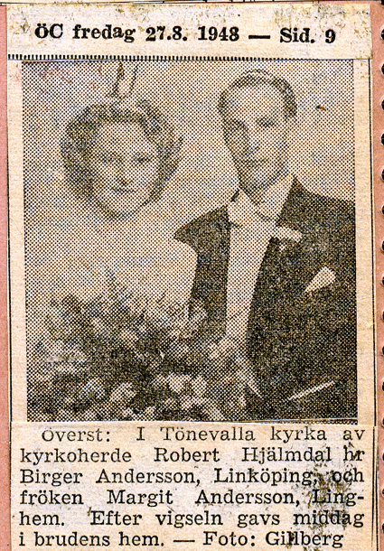 | Andersson, Birger med maka Margit Andersson, Linghem. "Den bästa av Lingheimers arbetare". Margit är syster med Maj g.1938 Jönsson och 1942 Kristoffersson, Ellen g.1942 Johansson och Ulla g.1948 Samuelsson, | 1948 | ||