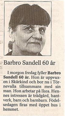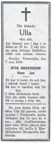 | Andersson, Ulla, svärdotter till Beda och David, Överby | 1949-05-07 | ||