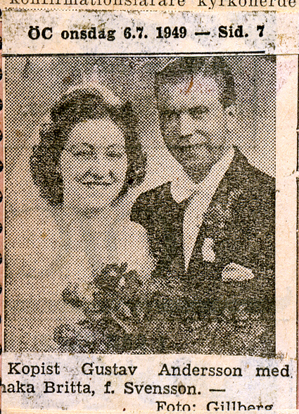 | Andersson, Gustav, kopist, med maka Britta Svensson. Hon är dotter till Verner Svensson i Bjärbylund. | 1949 | ||