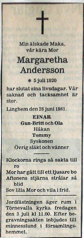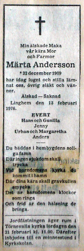 | Andersson, Märta, gift med Evert, Linghem | 1976-02-13 | ||