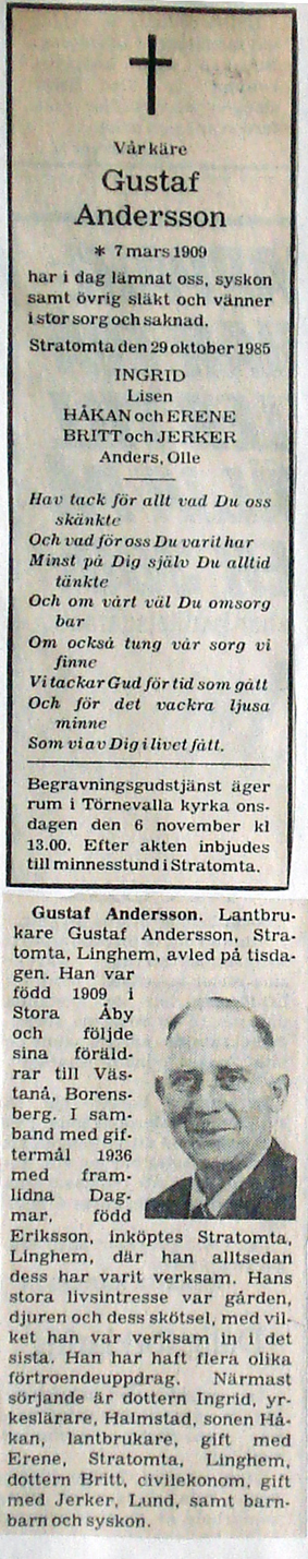 | Andersson, Gustaf, Stratomta | 1985-10-29 | ||
