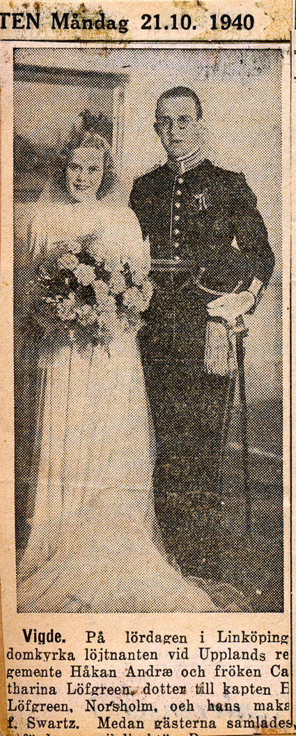 | Andræ, Håkan, löjtnant, med hustru Catharina Löfgreen. | 1940 | ||