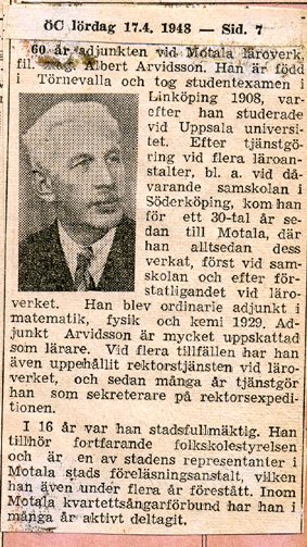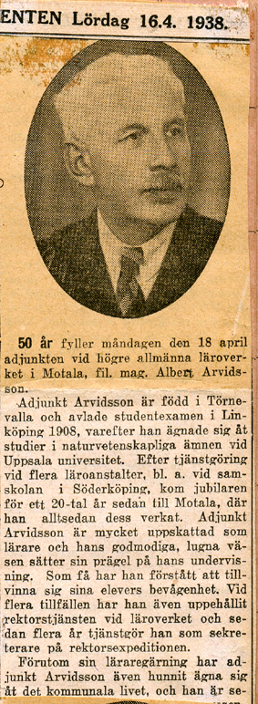 | Arvidsson, Albert, fil. mag. från Törnevalla | 50 år 1938 60 år 1948 |