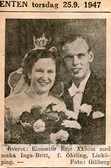 | Axbom, Eric med maka Inga-Britt Öhrling, Linköping. Erik bodde i Skavestad ett tag. | 1947 | ||