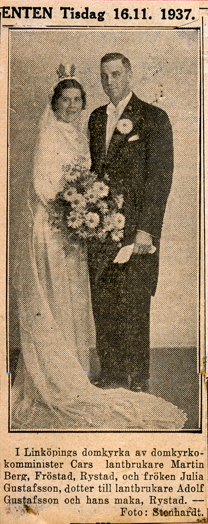 | Berg, Martin, lantbrukare Fröstad, Rystad, med maka Julia Gustafsson, | 1937 | ||
