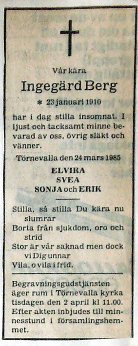 | Berg, Ingegärd, gift med Albin? | 1985-03-24 | ||