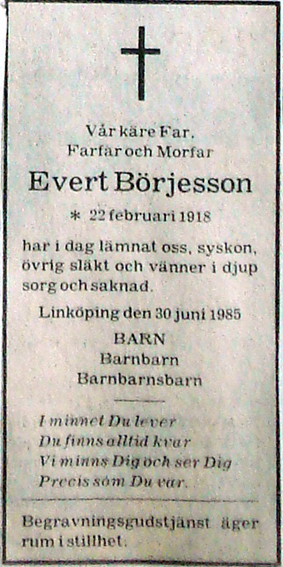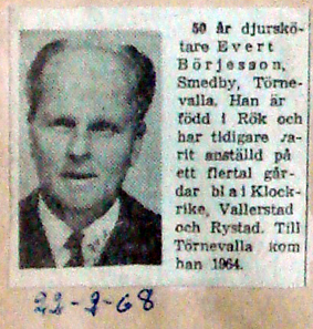 | Börjesson, Evert, "forarn' i Prästgår'n" | 50 år 1968 | 1985-06-30 | |