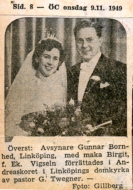 | Bornhed, Gunnar, avsynare, med maka Birgit Ek. Birgit är kusin till Stig Smé. Birgits mor hette Anna. Gunvor Ek g. Withell är en syster. | 1949 | ||