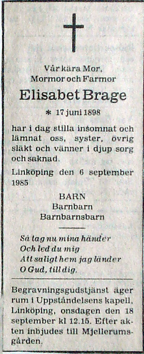 | Brage, Elisabet, Törnevalla | 1985-09-06 | ||