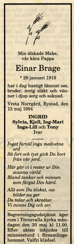 | Brage, Einar, son till Elisabet, Törnevalla | 1994-05-13 | ||