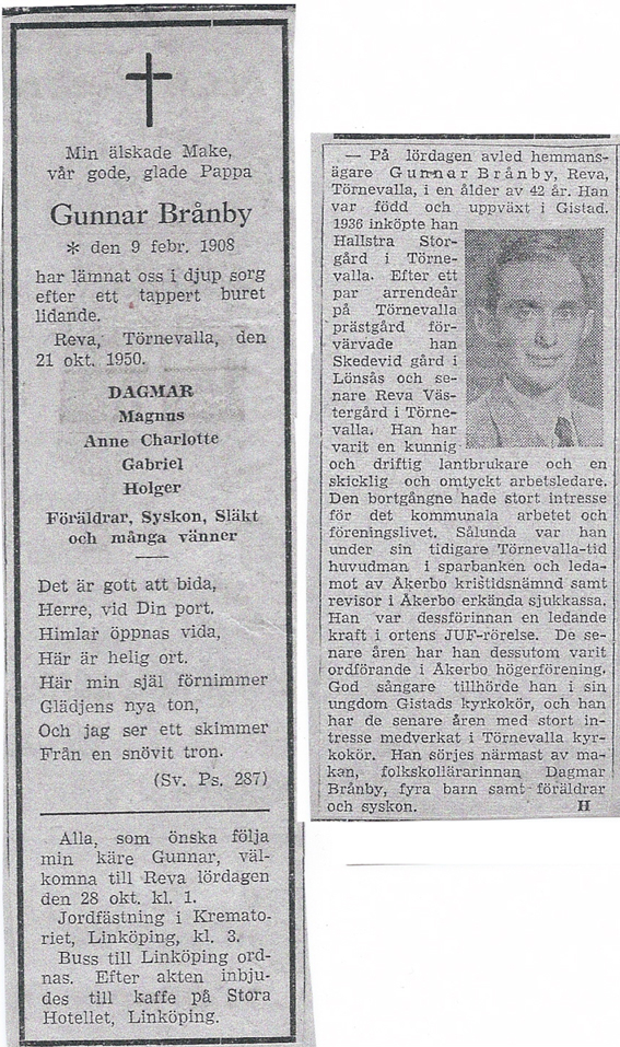 | Brånby, Gunnar, Reva, Dagmars första make, far till Gabriel och Magnus | 1950-10-21 | ||
