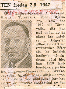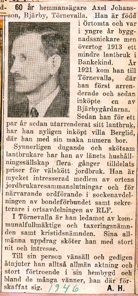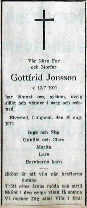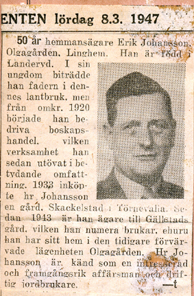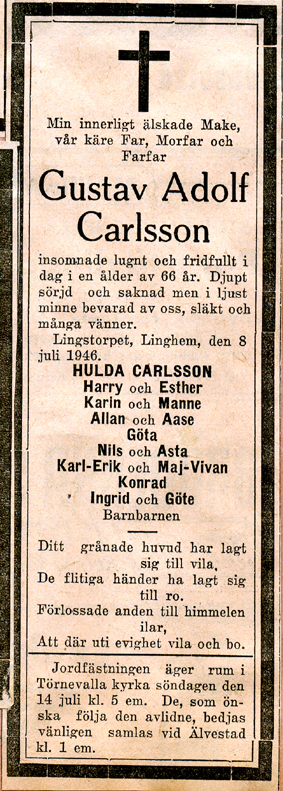 | Carlsson, Gustav Adolf, Lingstorpet, Linghem, far till "Kicken" Karlsson | 1946-07-08 | ||