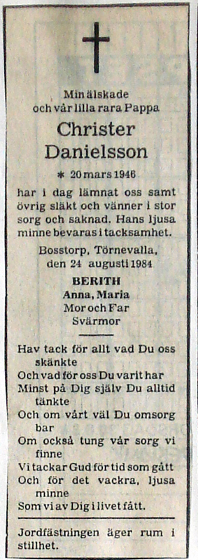 | Danielsson, Christer, Bosstorp | 1984-08-24 | ||