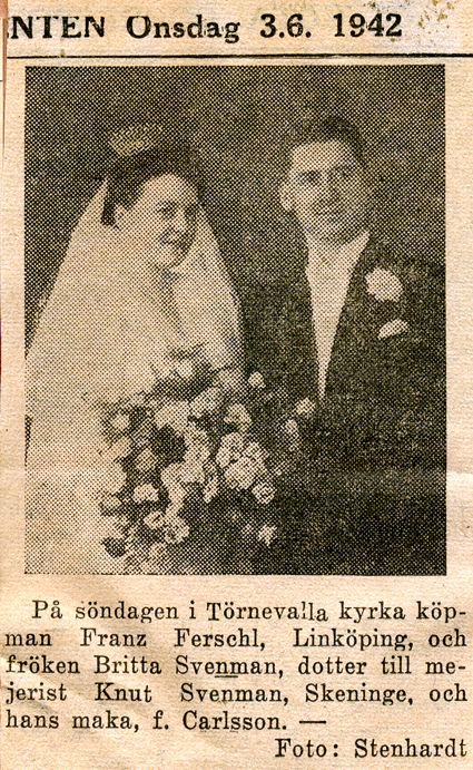 | Ferschl, Franz, köpman, Linköping med hustru Britta Svenman, dotter till mejerist Knut Svenman, Skeninge. Knut var mejeriföreståndare i Linghem 1915-1938. Britta jobbade i mejeriet. | 1942 | ||