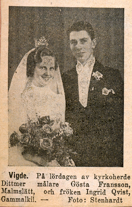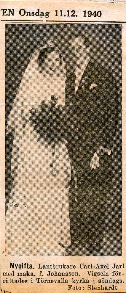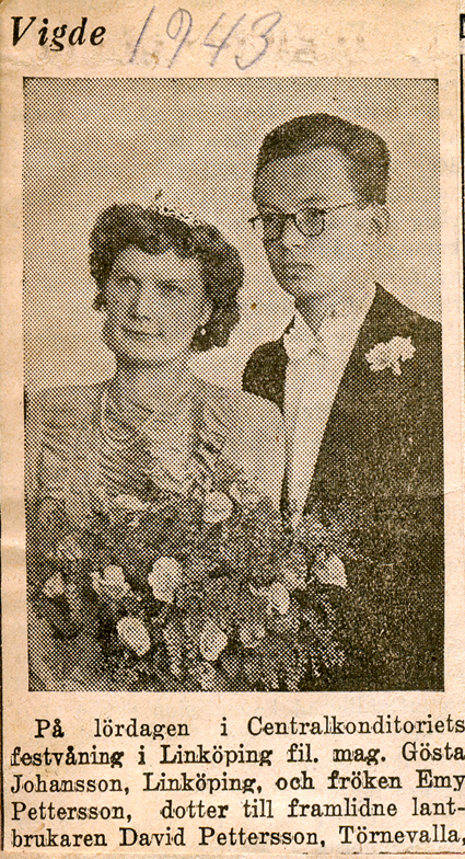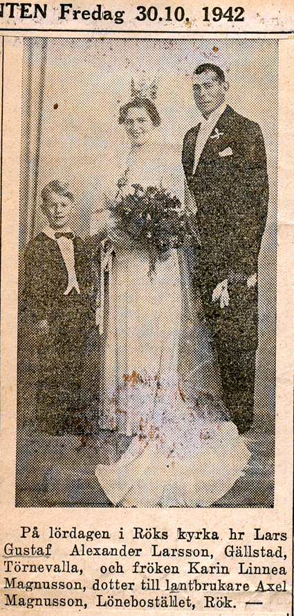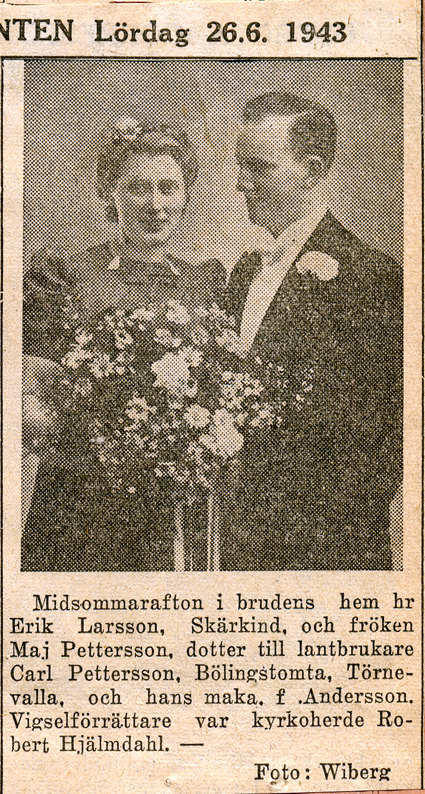 | Larsson, Erik, Skärkind med maka Maj Pettersson dotter till Carl Pettersson Bölingstomta. Maj hade fler syskon. | 1943 | ||