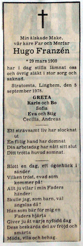 | Franzén, Hugo, Stratomta | 1978-09-05 | ||