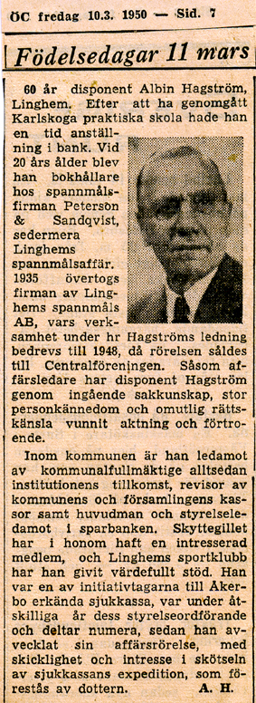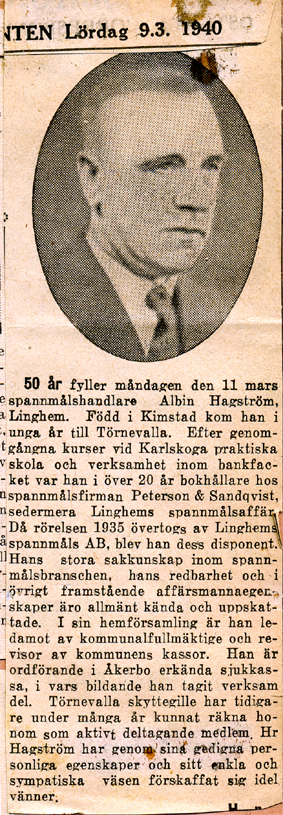 | Hagström, Albin, disponent, spannmålshandlare Linghem. Tog över magasinet efter Leonard Pettersson tillsammans med Evert Andersson och Ernst Andersson. | 50 år 1940 60 år 1950 |