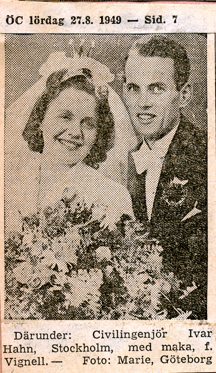 | Hahn, Ivar, civilingenjör Stockholm, med maka Gunhild Vignell. Ivar är son till Albert och Signe | 1949 | ||