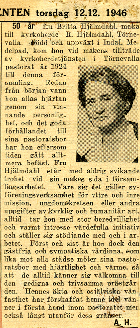 | Bergström, Matilda, gift med läraren Reinhold, Törnevalla | 1940-03-14 | ||
