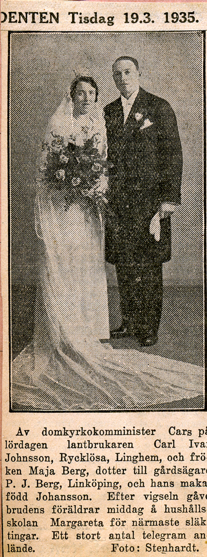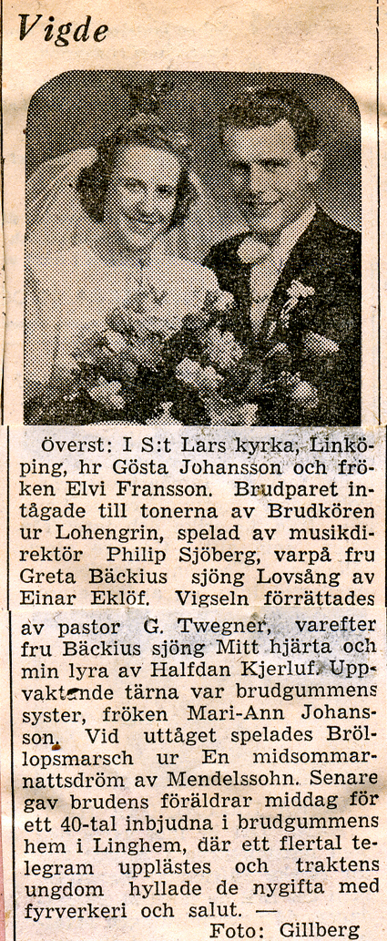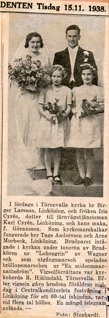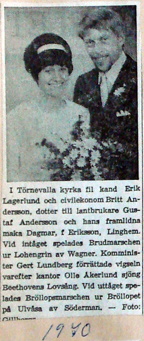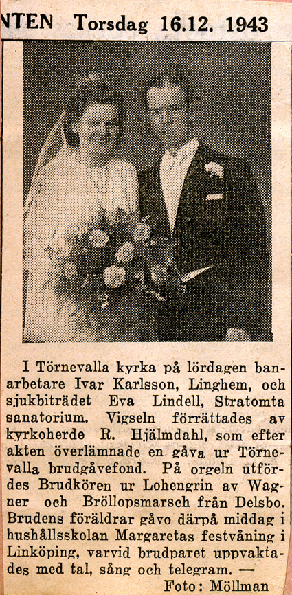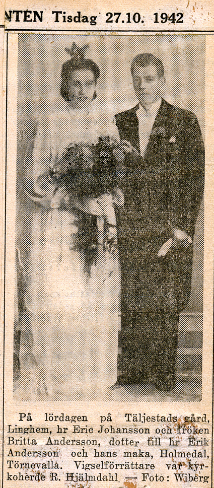 | Smith, Lars, Linghem med maka Christina, Linköping. Dubbelbröllop med Kenneth och Ulla-Britt Lexonius. | 1937 | ||