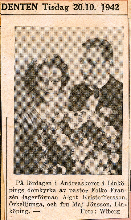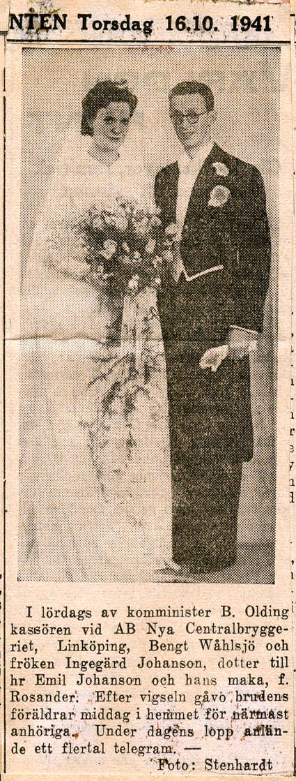 | Wåhlsjö, Bengt, kassör, Linköping med maka Ingegärd Johansson, dotter till Emil Johansson. | 1941 | ||