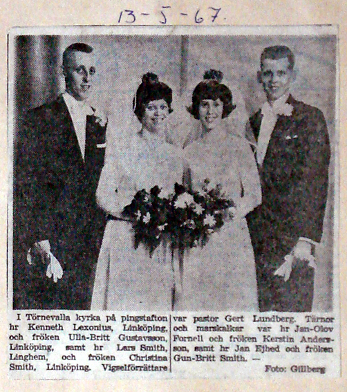 | Lexonius, Kenneth med maka Ulla-Britt Gustavsson, Linköping. Dubbelbröllop med Lars och Christina Smith | 1967 | ||