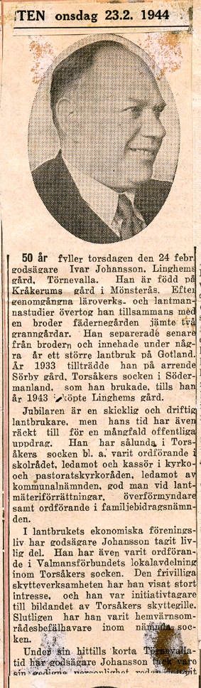 | Svenman, Knut Hilarius, mejeriföreståndare i Linghem | 50 år 1938 60 år 1948 |