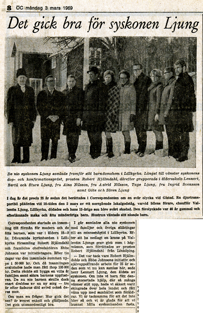 | Ljung, Valentin, Lillkyrka, tågdödad 9-barnsfar. 25 år senare | 1944-03-02 | ||