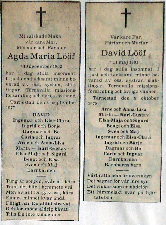 | Lööf, David, Tärnestad, gift med Agda Maria | 1978-10-09 | ||