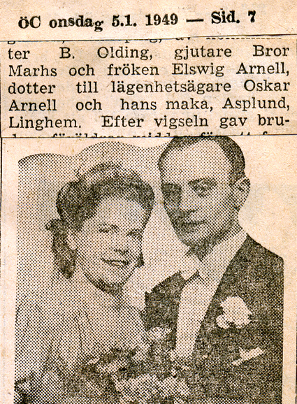 | Marhs, Bror, gjutare, med maka Elswig Arnell, dotter till Oskar Arnell, Asplund, Linghem | 1949 | ||