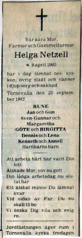 | Netzell, Helga, Skackelstad, gift med John | 1982-09-25 | ||