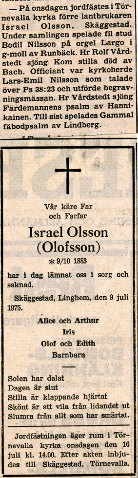 | Olsson, Israel, Skäggestad, gift med Hanna Elisabet | 1975-07-09 | ||