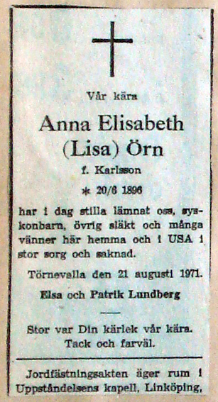 | Örn, Anna Elisabet (Lisa), Törnevalla | 1971-08-21 | ||