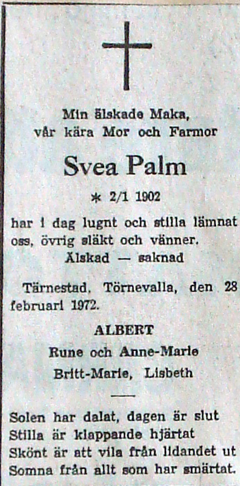 | Palm, Svea, Tärnestad | 1972-02-28 | ||