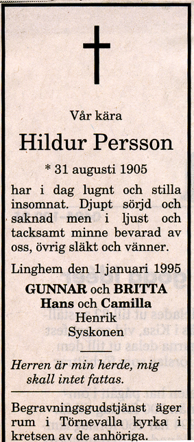 | Persson, Hildur, Linghem, lärare i Törnevalla? | 1995-01-01 | ||