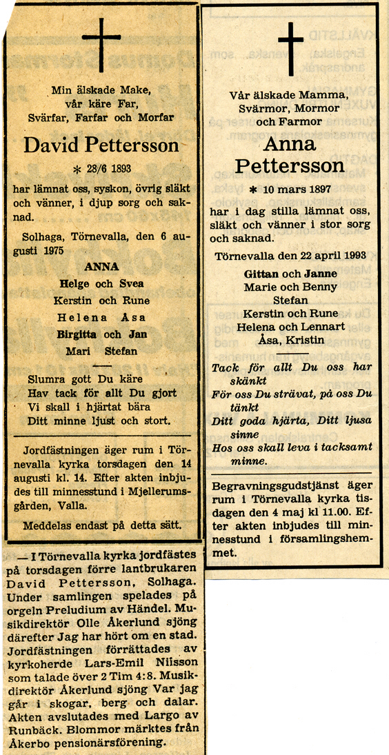 | Pettersson, Anna, Solhaga, Bjärby, f. Palm gift med David | 1993-04-23 | ||