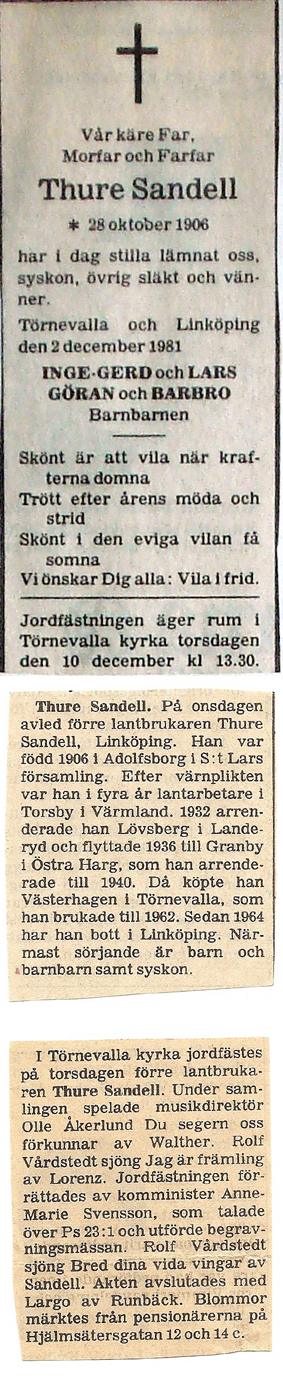 | Sandell, Thure, Västerhagen, Hallstra, gift med Svea | 1935 | 1981-12-02 | |