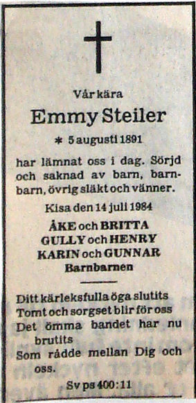 | Steiler, Emmy, Linghem, gift med Artur | 1984-07-14 | ||
