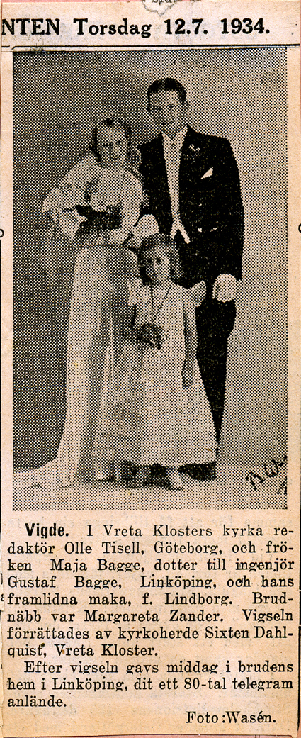 | Tisell, Olle, redaktör, Göteborg med hustru Maja Bagge, Linköping | 1934 | ||