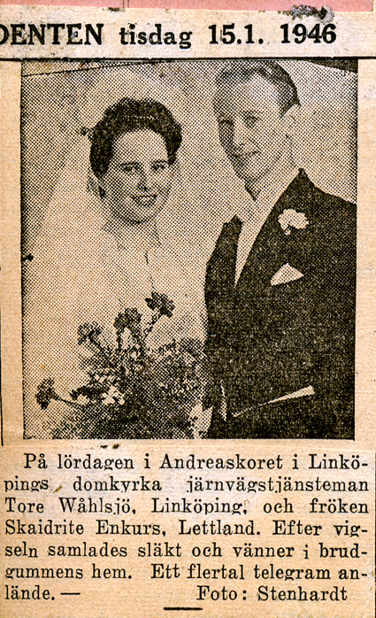 | Wåhlsjö, Tore, Linköping med maka Skaidrite Enkurs, Lettland. | 1946 | ||