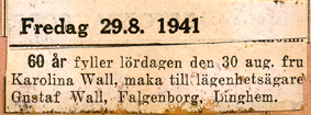 | Wall, Karolina, Falkenborg, gift med Gustaf d.y. | 60 år 1941 | ||