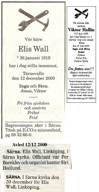 | Wall, Elis, Stenvallen, Bjärby gift med Carin Wall | 1953 | 1998-08-12 | |