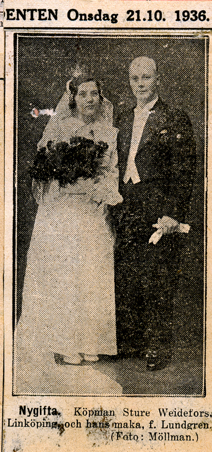 | Weidefors, Sture, köpman, Linköping med maka f. Lundgren. Weidefors var fotograf i stan. | 1936 | ||